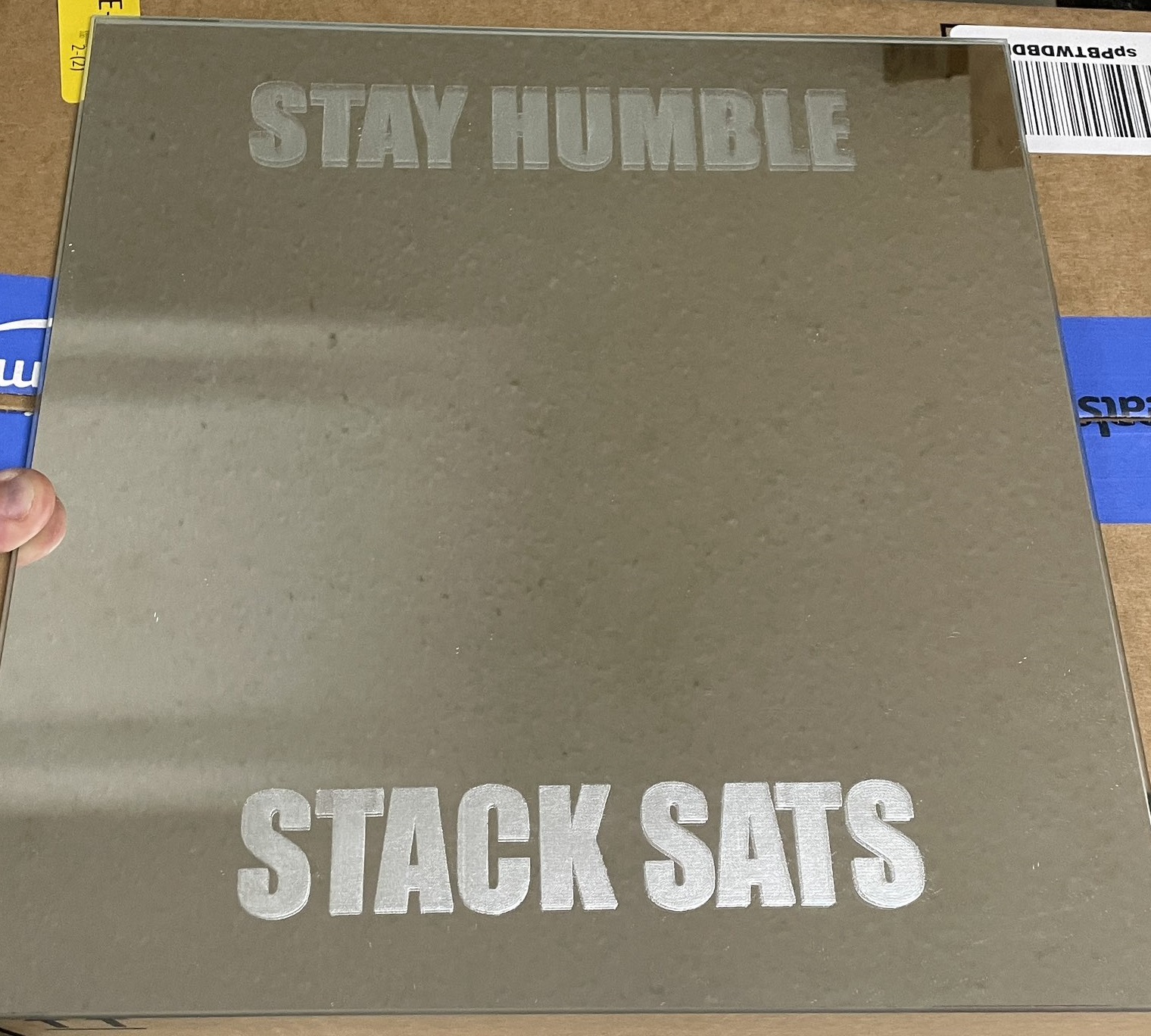 Bitcoin engraving is run by a bitcoiner with a laser engraver in his garage who likes to earn sats in exchange for his work.