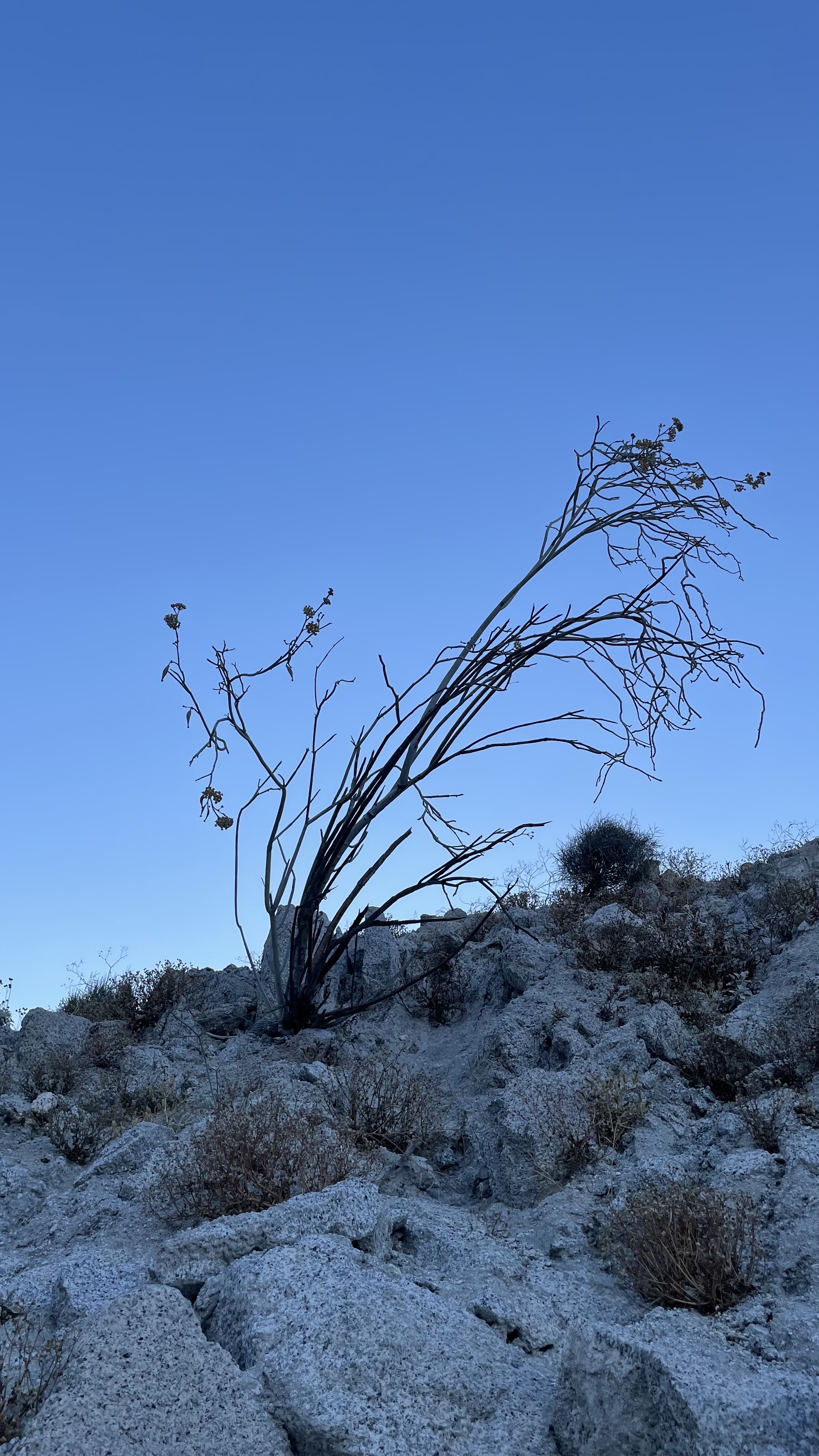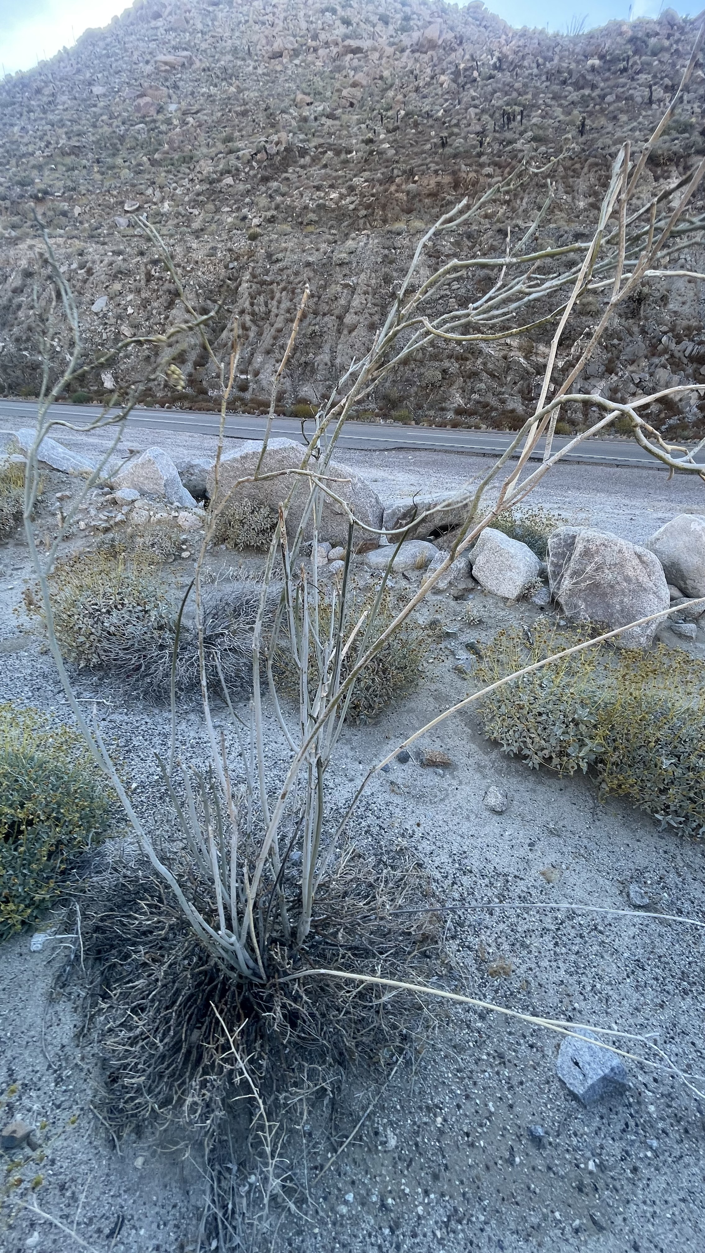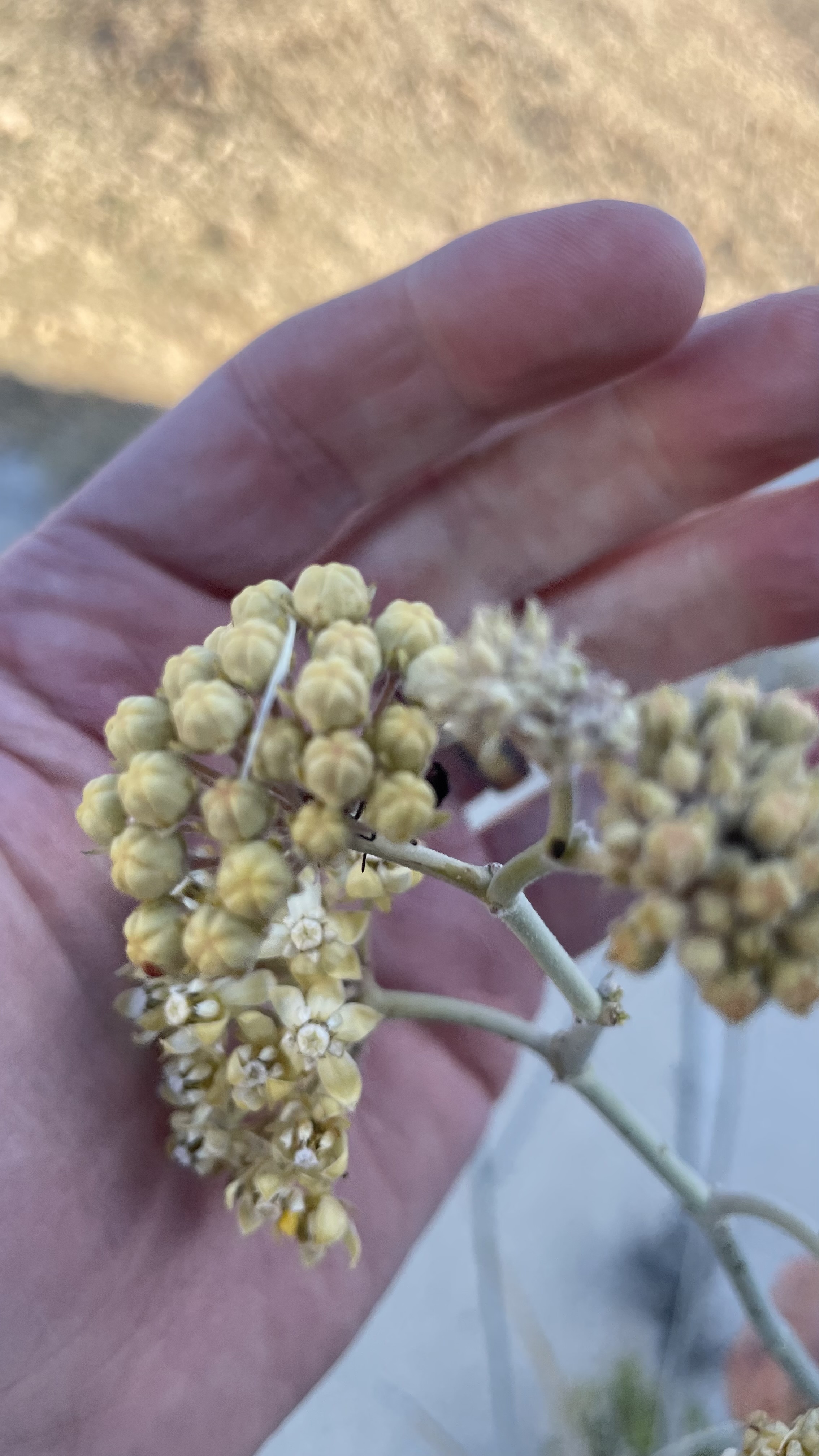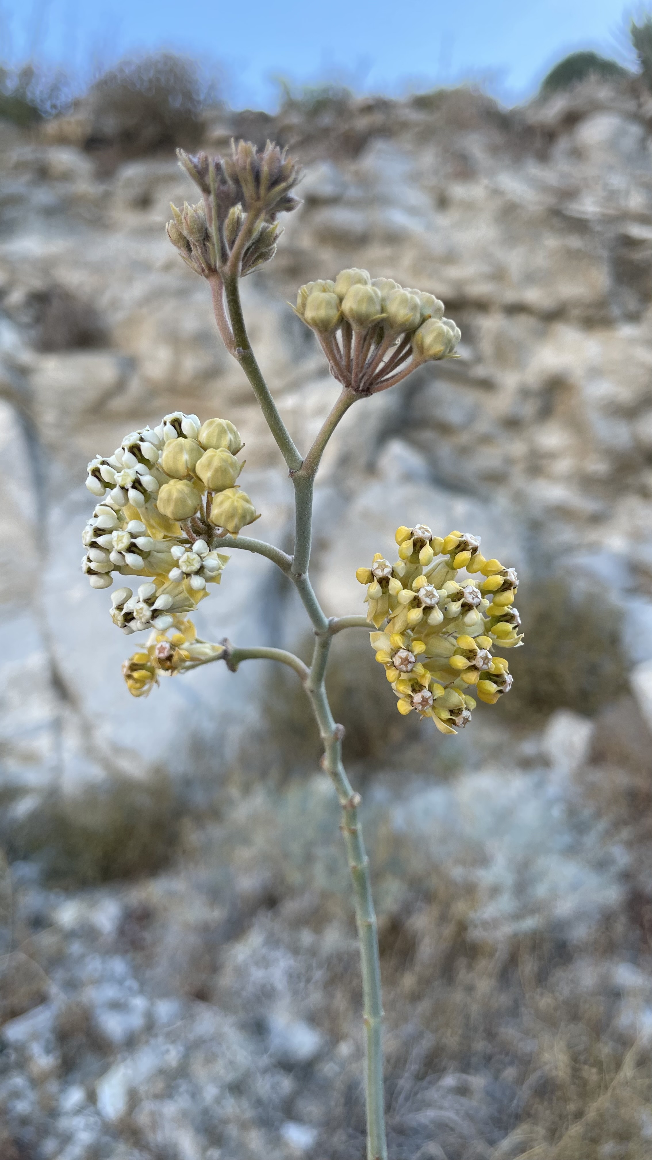 White-Stemmed Milkweed is a tough desert species native to the drylands of Southern California and Baja California, Mexico. It is especially common in inland desert areas, where it grows among rocky outcrops in sandy and rocky soils. Known for its pale stems and desert-adapted character, Asclepias albicans is a standout milkweed for collectors, native plant growers, and anyone interested in Southwest desert flora.